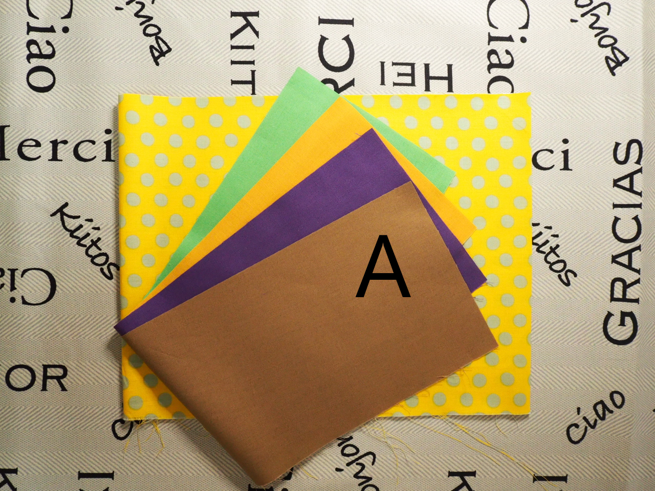 ※配色Aの背景にある文字柄の布が、A~C共通のボーダー布になります
