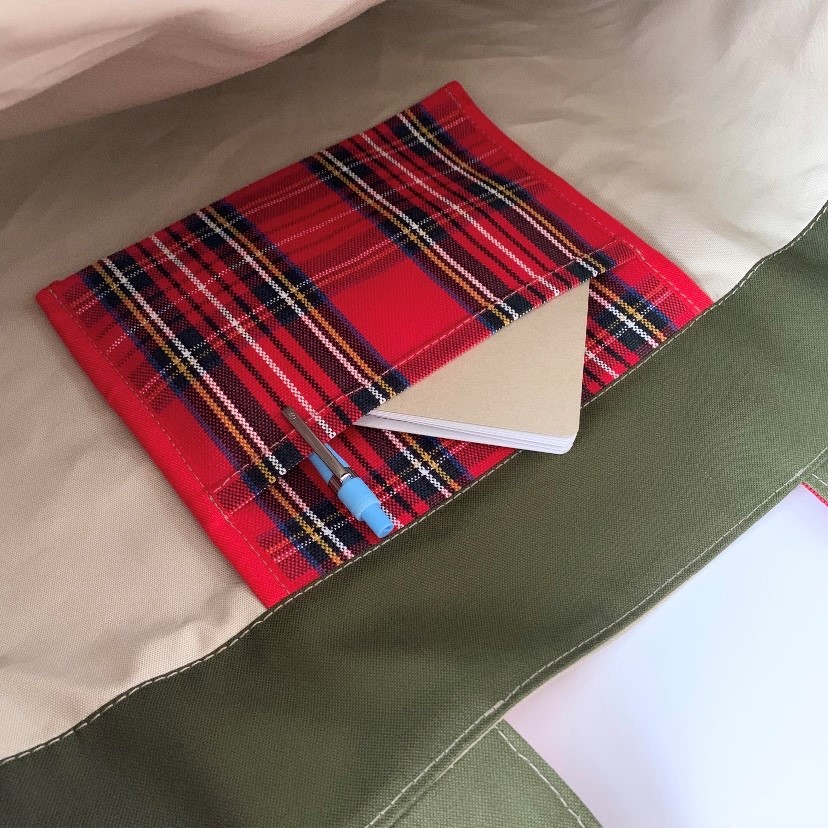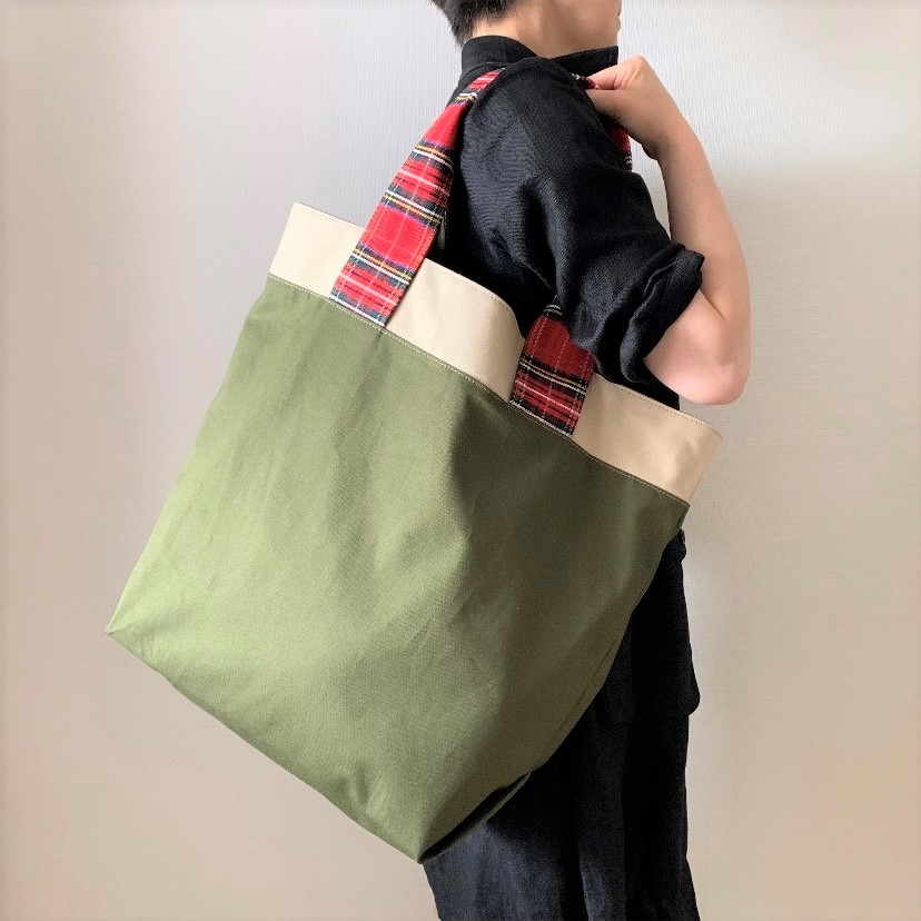 Ⓐ赤チェック(持ち手)× オフベージュ(口布)× ダークオリーブ(本体)