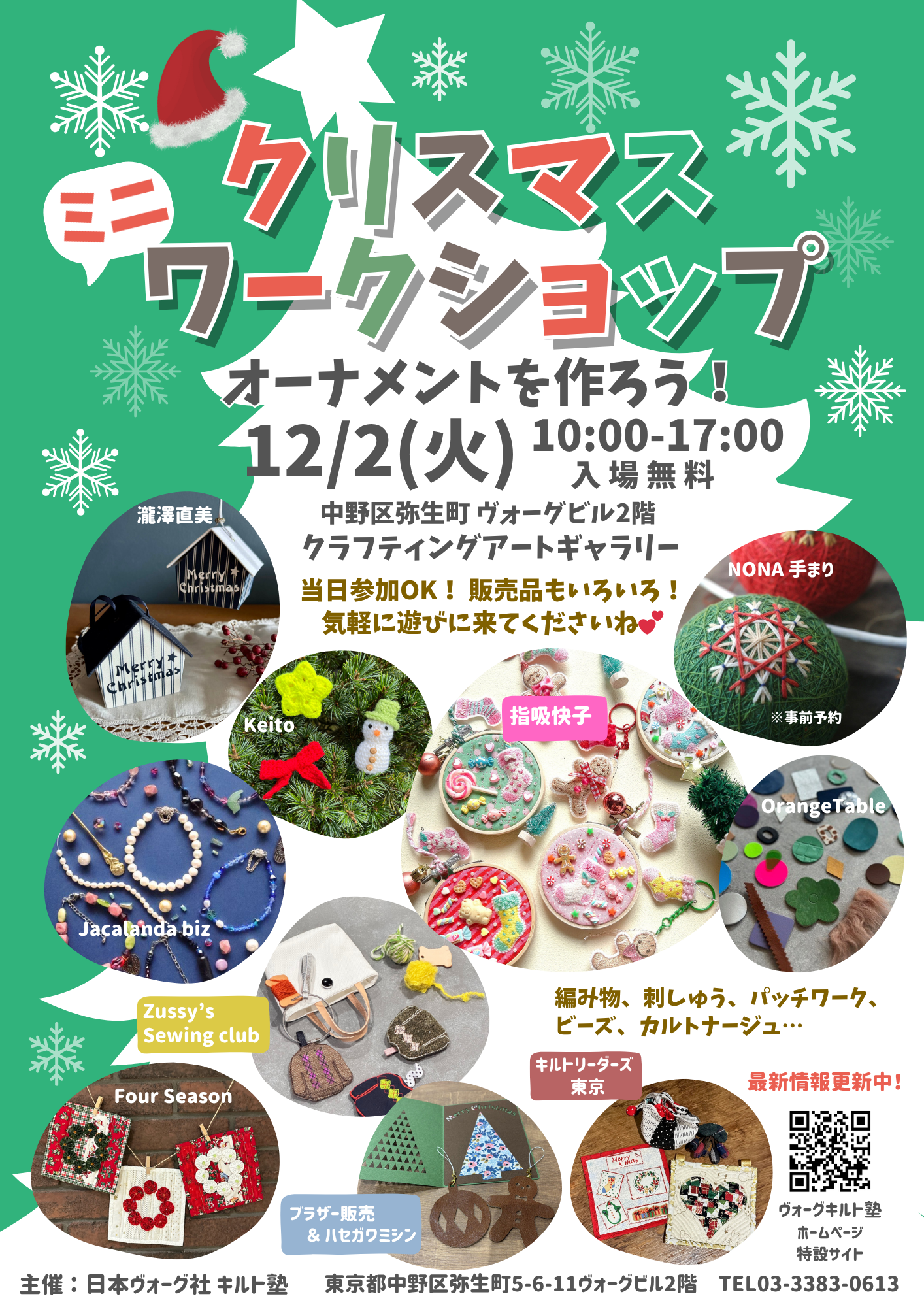 【最新情報更新中】12/2(火)クリスマス ミニワークショップ開催決定!